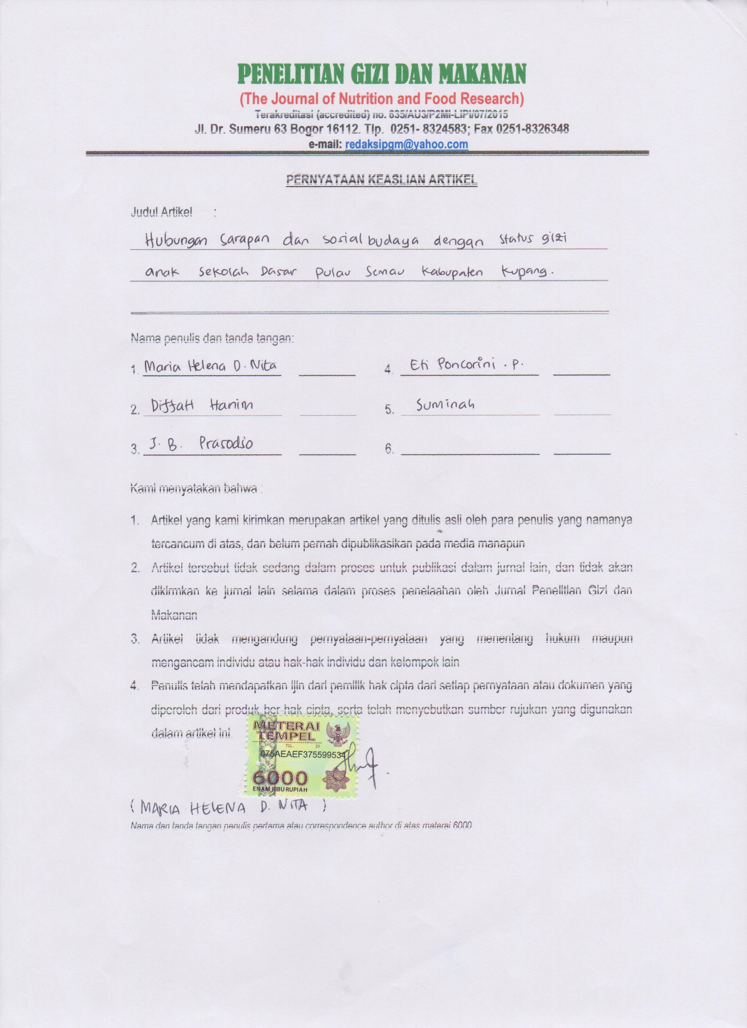HUBUNGAN SARAPAN DAN SOSIAL BUDAYA DENGAN STATUS GIZI ANAK SD PULAU SEMAU KABUPATEN KUPANG (RELATIONSHIP BREAKFAST AND SOCIO-CULTURAL WITH NUTRITIONAL STATUS OF CHILDREN ELEMENTARY SCHOOL IN SEMAU ISLAND KUPANG REGENCY)